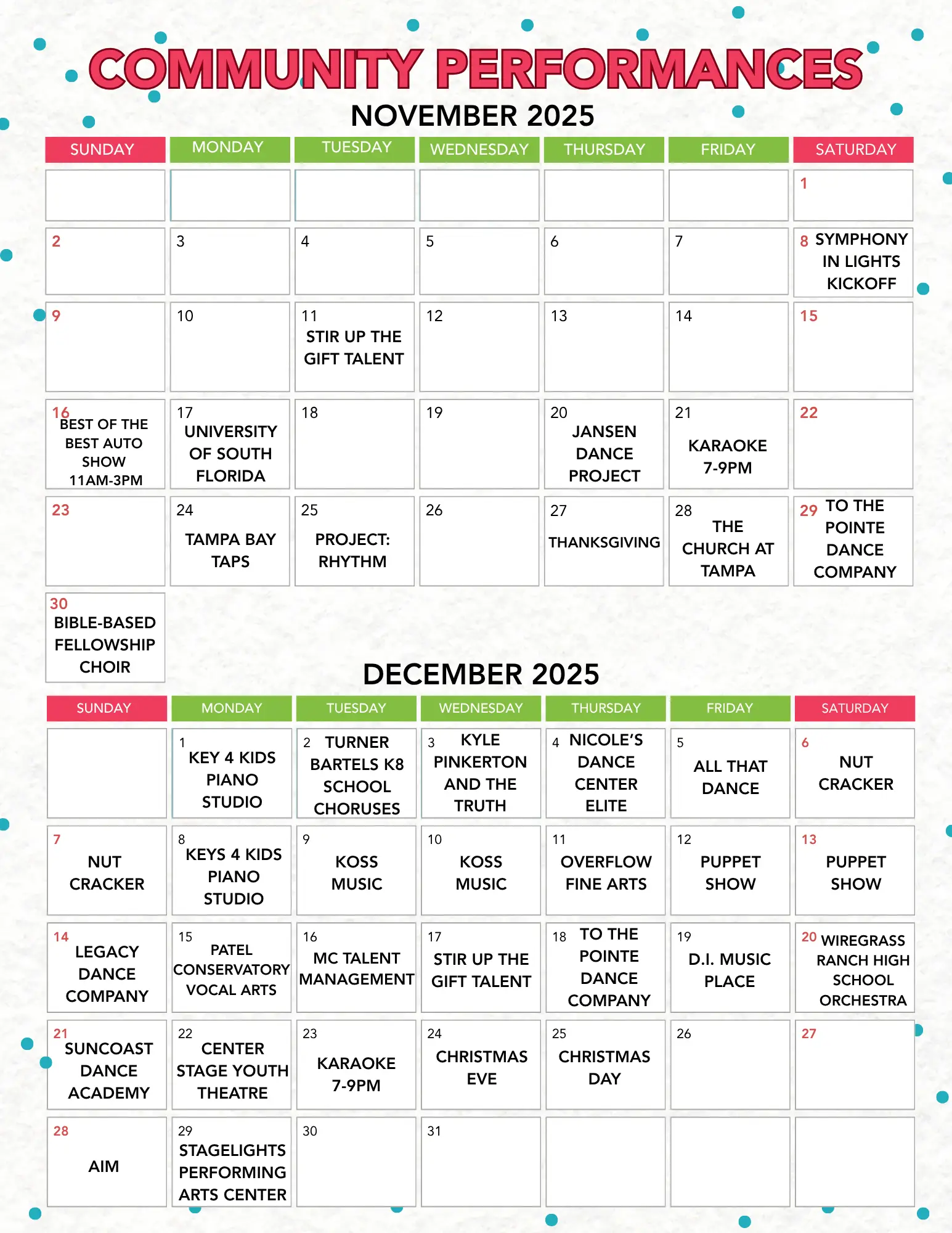 Community Performance Schedule
